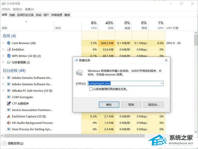 二:使用任务管理器打开compmgmt.msc