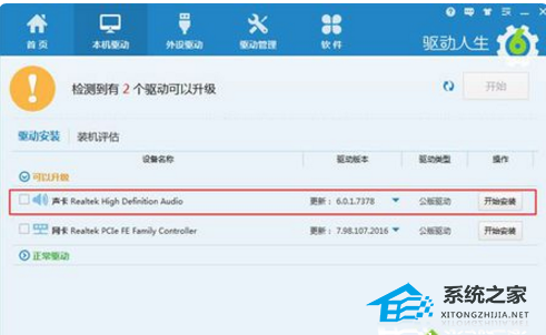 2、这时候自己下载声卡驱动安装,或者使用驱动精灵、驱动人生等工具安装最新声卡驱动。