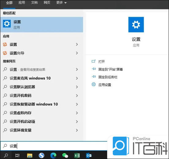 1. 桌面左下角的"搜索"-输入"设置",点击打开即可。
