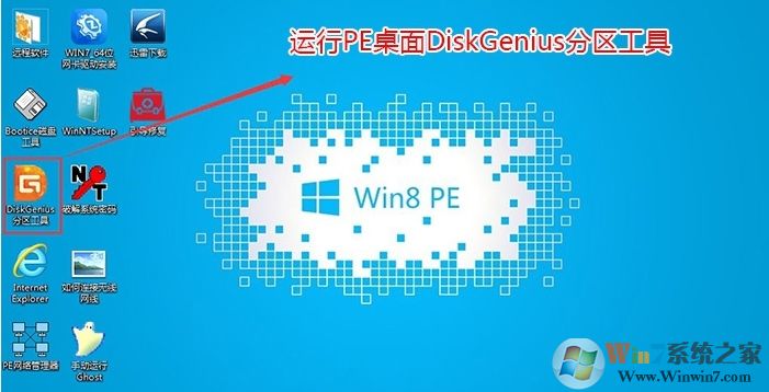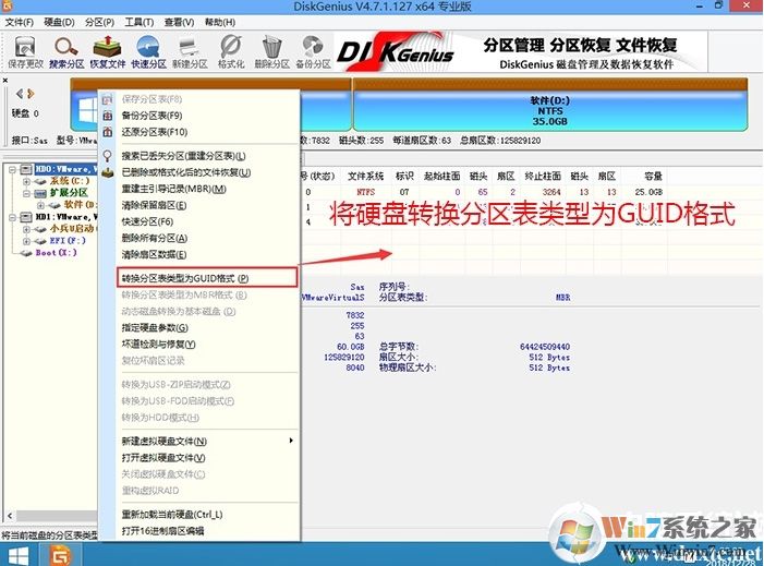 1、选择U盘启动盘进入PE后,在桌面上运行DiskGenius分区工具,点击菜单栏的【硬盘】,选择【转换分区表类型为guid格式】,然后保存更改,如下图所示;
