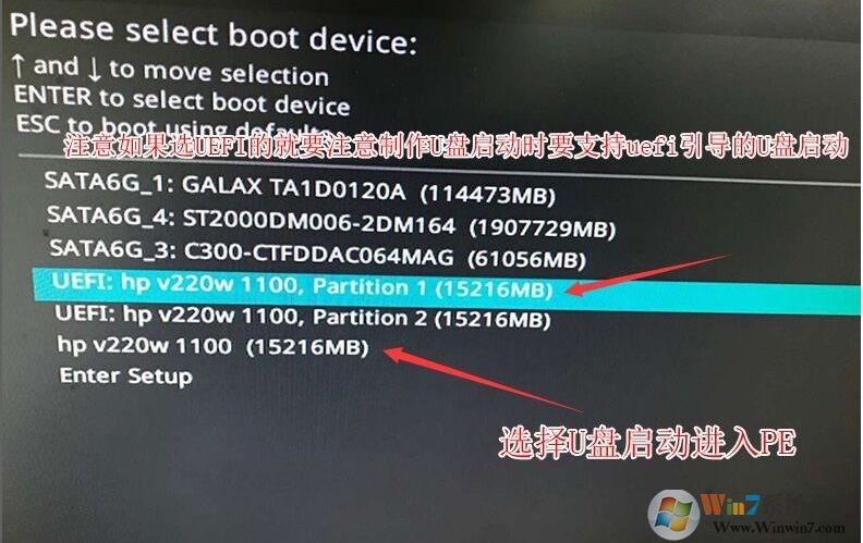 5、把刚制作好的U盘启动盘插入到机器上,重启按ESC选择识别到U盘启动项,回车;