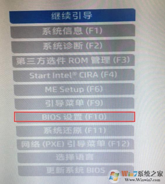 1、开机一直按按ESC,出现以下界面后,再按F10进入BIOS,如下图所示;