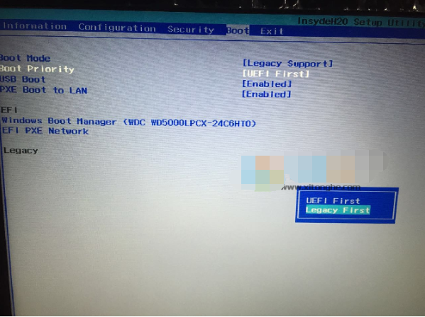 5、接下来会出现一项Boot Priority 选项,回车后选择为leagcy first ;