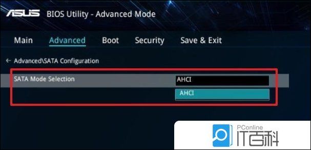 电脑开机, 在出现华硕logo的界面,连续 按F2,进入BIOS Utility - Advanced Mode界面(F7),通过方向键选择Advanced Mode - Advanced - SATA Configuration - SATA Mode Selection将设定值改回AHCI,按F10,保存重启