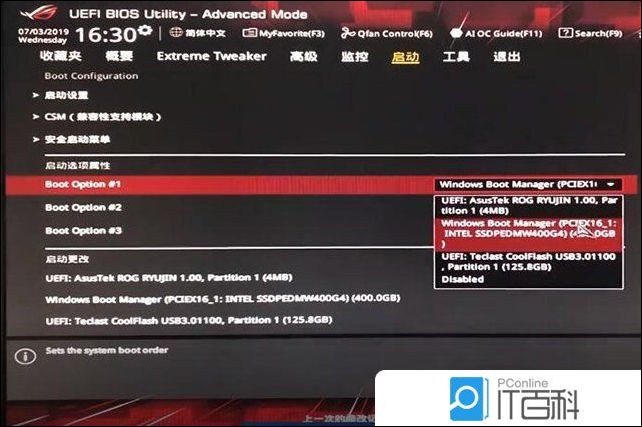 这个时候,可以看到 Boot OPtion #1, 固态硬盘已经调整为第一启动项