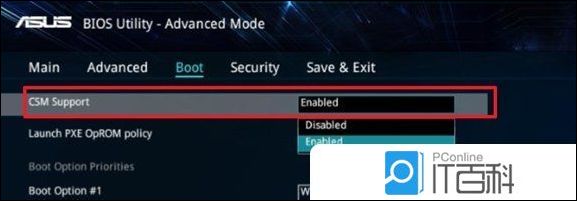 注:不同机型BIOS界面设置项有差异,部分机型无CSM Support相关选项