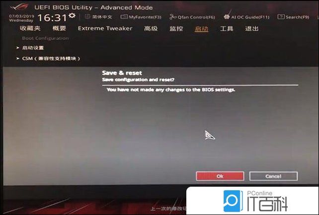 最后,按 F10 键,S ave & reset( 保存并重启),点击OK,即可保存刚刚的BIOS设置
