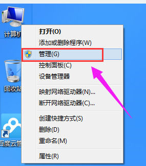 在桌面的计算机图标上,点击鼠标右键选择"管理"。