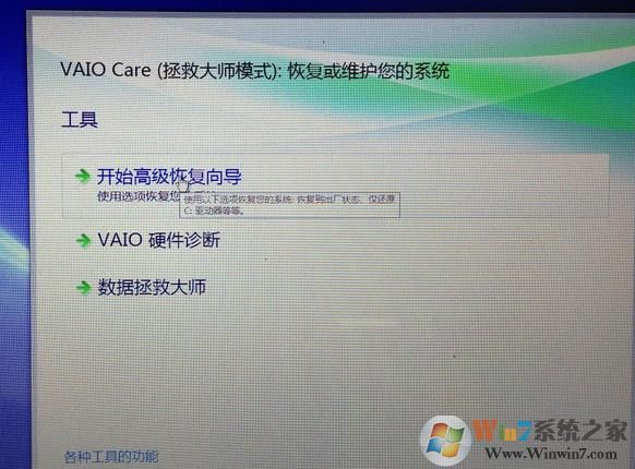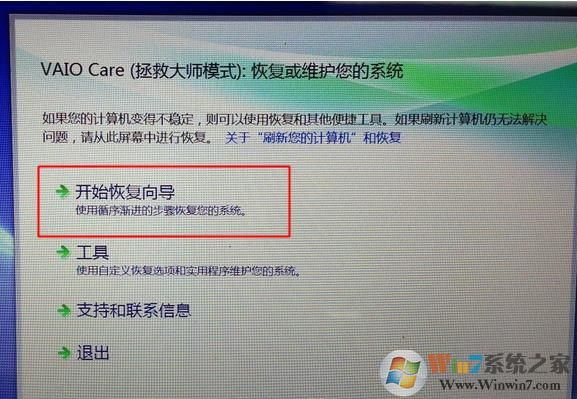 6、启动VAIO Care拯救大师模式;