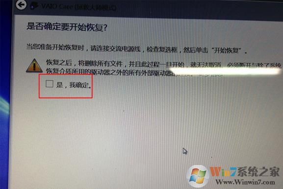 8、询问是否要开始恢复,勾选"是,我确定",根据步骤一步步操作;