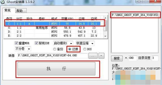 3、参考下图的设置方法,核对后点击【执行】,点击执行后,电脑会重新启动哦。