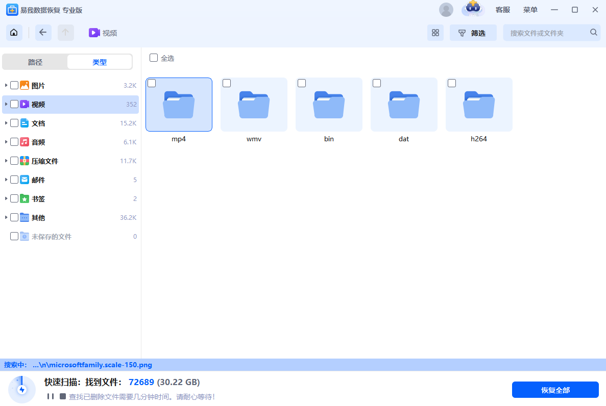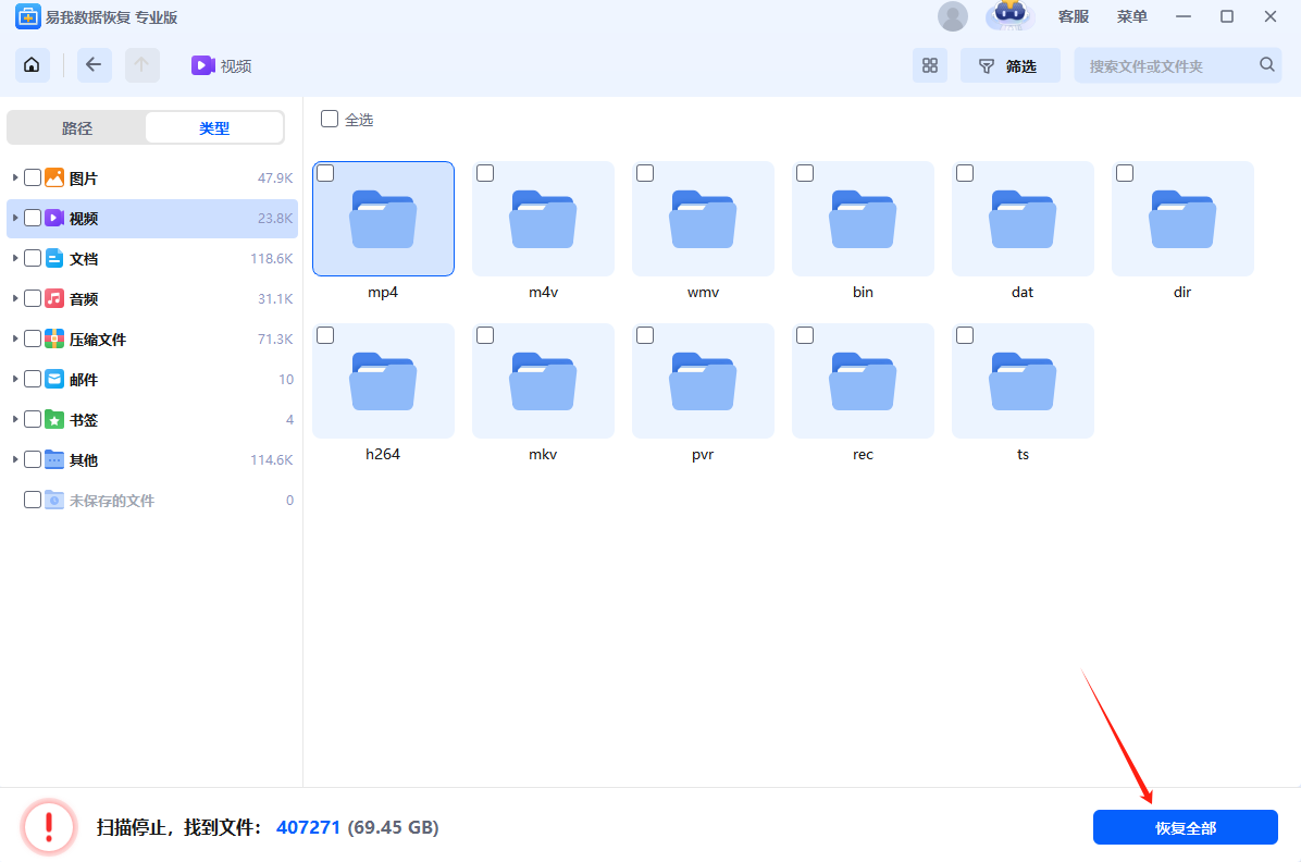 一般来讲,只要删除的视频没有被其他数据所覆盖,都有机会进行恢复的,推荐选择易我数据恢复软件,该软件可以恢复因删除、病毒感染、格式化等原因丢失的视频。