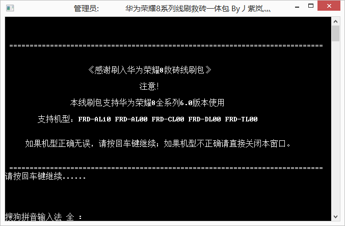 解压完成后将会出来命令窗口,进入Fastboot模式即可进行刷机!