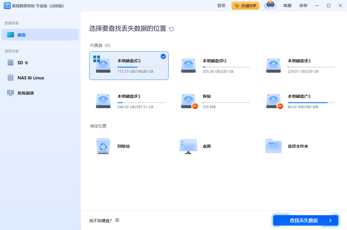 点击下方的软件下载按钮,安装好易我数据恢复后,按照下方三个步骤来操作。