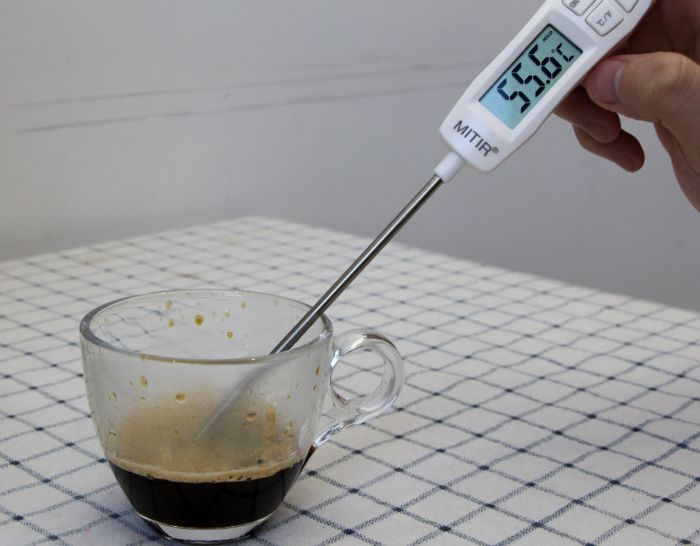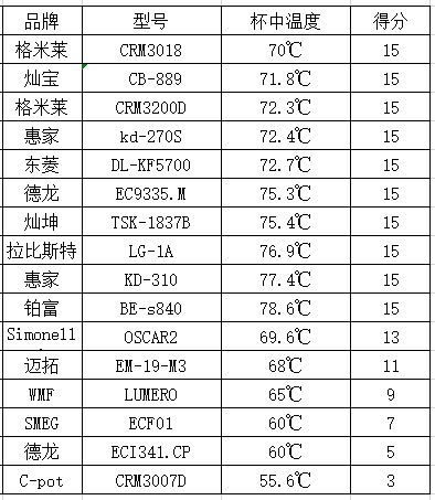 小结:杯中咖啡的温度对咖啡的口感也是有一定影响作用的,70℃-80℃是较为适宜的,其中格米莱、灿宝、惠家、东菱等咖啡机的咖啡出品温度都很适宜。