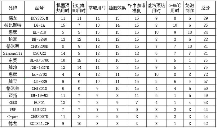 评测结果中,我们会针对每项测试项目的结果为16台家用专业半自动咖啡机做出相应的打分,综合每个测试项目的得分给出最后的评分结果。