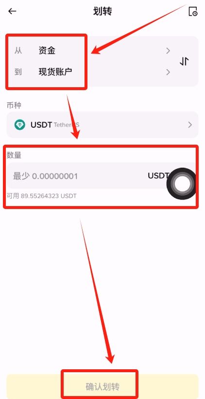 我们需要将我们的USDT划转到现货账户之后才可以去购买比特币。