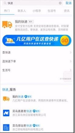 1.首先打开 支付 宝,然后在 搜索 框里输入我的快递。