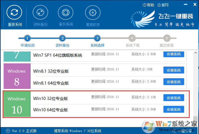 4、到达系统选择界面,飞飞一键重装精选了好用的操作系统,Win8系统有32位系统和64位系统之分,如果预装(电脑产商预装的系统)Win8/win10电脑只能选择64位Win8。