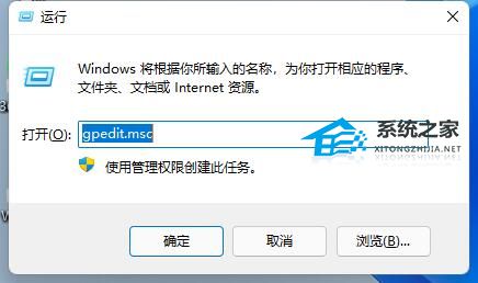 2. 在运行窗口中输入“gpedit.msc”,回车打开。