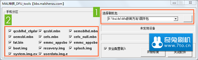 打开刷机工具DFU_tools.exe,选择固件包,勾选安全配置