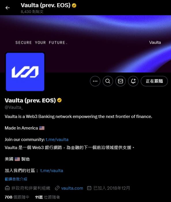 | 官方推特 | https://x.com/Vaulta_ |