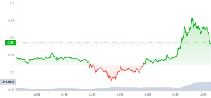 截止目前,PI 的交易价格为$0.5725,在过去24 小时的价格变化为-9.44%。以下为PI 过去一年的价格变化: