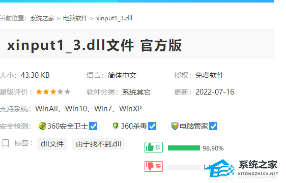 在平时工作之余,我们会去玩游戏来放松一下心情,但是有不少用户玩游戏的时候却出现了问题,就例如有系统提示xinput1_3.dll丢失,那么当你遇到这一情况该怎么办呢?其实很好解决的,下面就由在下为大家分享了三种解决方法,我们来看看吧。