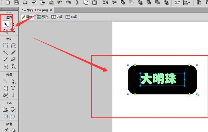 3、然后将文字移动到矩形的上方,并用 指针工具 (黑箭头)选中文字和底色,如图