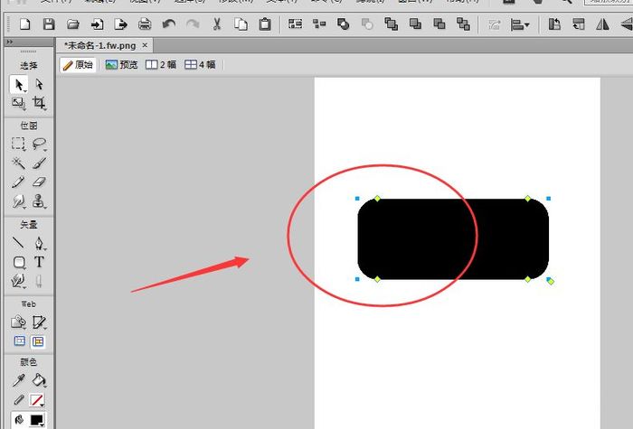 1、如图,打开FW工具后,先制作一个矩形来作为底面后者将一张图片置入到画布上也可以