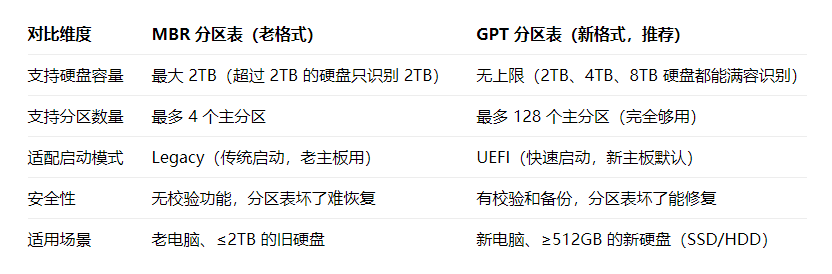 这是新硬盘安装win10怎么分区时遇到的第一个重要选择,直接影响硬盘的兼容性和性能上限。先看两者的核心区别,新手可以直接看表格对比: