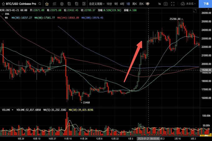 2、2023年春节假期为:1月21日(除夕)-1月27日。春节前一个月走出上涨态势,并没有出现所谓的“春节效应”。当然这也恰逢2022年11月FTX暴雷带来持续3个月的低迷后的反弹。