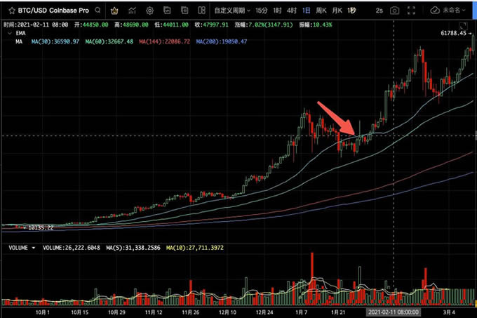 4、2021年春节假期为:2月11日(除夕)-2月17日。在春节前的30天即1月11日,比特币出现了20%的暴跌,这种跌幅在整个减半行情里都名列前茅,随后经过将近一个月的漫长震荡,终于在春节前3天即2月8日彻底走出大跌的阴影。而后,整个春节假期整体保持上涨态势。