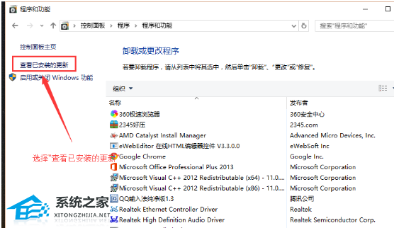 3. 在打开的界面中找到左侧“查看已安装的更新”。
