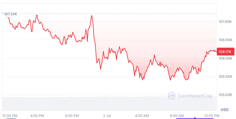据CoinMarketCap数据显示,截至发稿时,比特币价格为106,170美元。