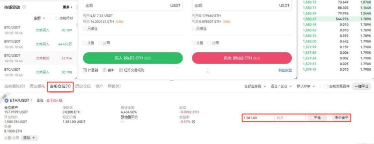 注:如果需要快速平掉全部仓位,可以选择具体仓位,点击【市价全平】。