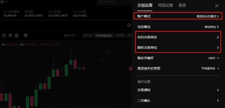 12、点击交易页面右上角设置图标—【交易设置】—选择【账户模式】【交易单位】等选项进行设置。