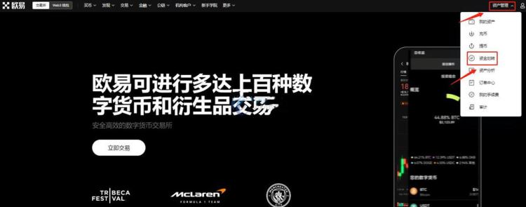 9、打开欧易交易所,点击右上角【资产管理】—【资金划转】