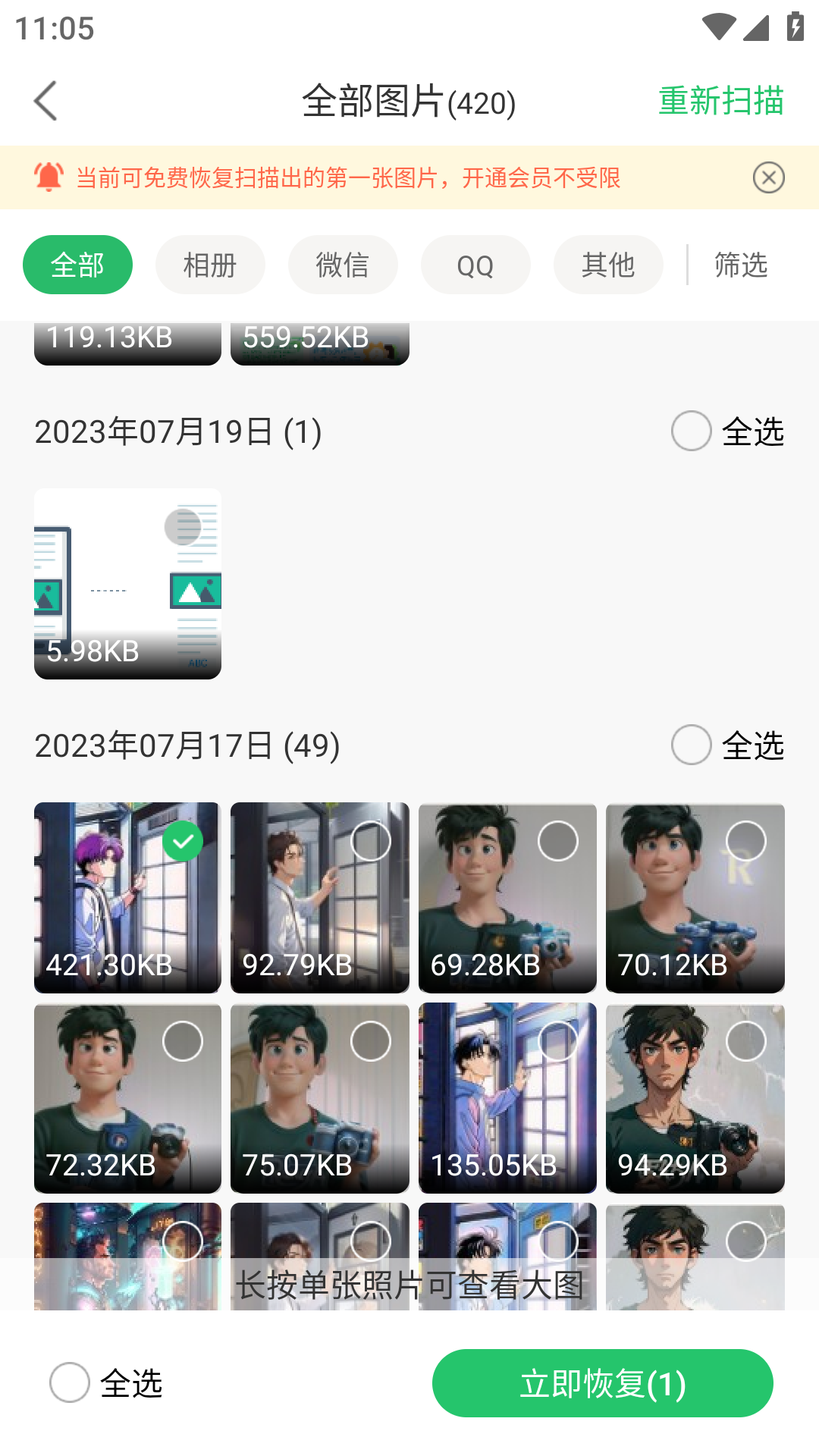 5、如果想恢复多张照片可以开通会员。