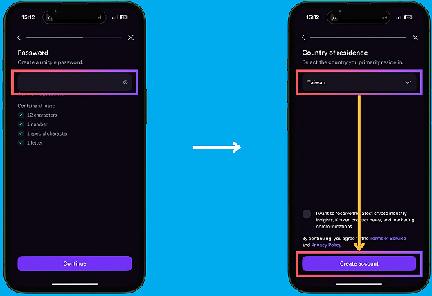 设定密码→选择国家→【Create Account】即完成