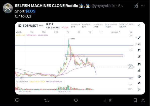 用户 @CW8900 认为 1.85 美元水平是短期看涨目标。根据这篇帖子,预计 EOS 价格会上涨。