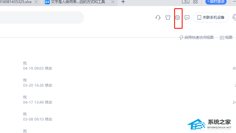 1. 用户打开wps软件并进入到主页,需要点击主页右上角处的设置图标,将会拓展出下拉菜单。