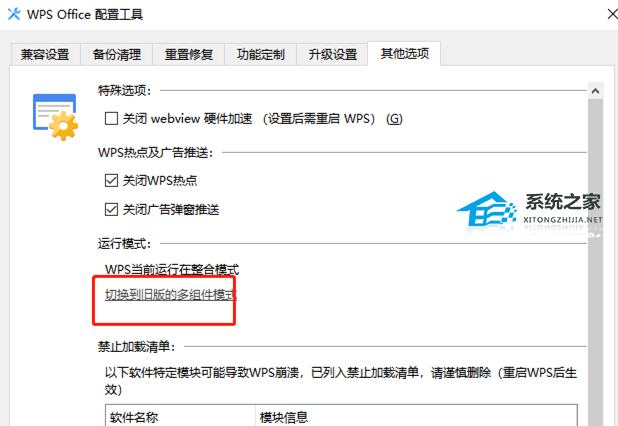 5. 接着在下方的运行模式板块中点击切换到旧版的多组件模式选项就可以了。