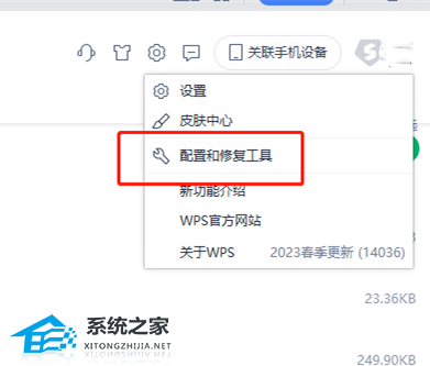 2. 用户在出现的下拉菜单中,需要点击其中的配置和修复工具选项,将会打开相关窗口。
