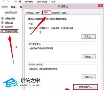 4、这个情况请右键我的计算机 =>属性 =>高级系统设置 =>高级 =>环境变量。