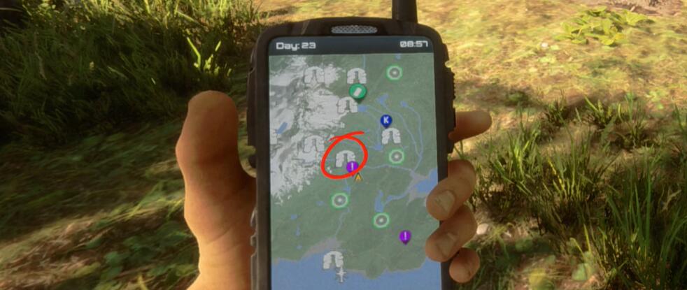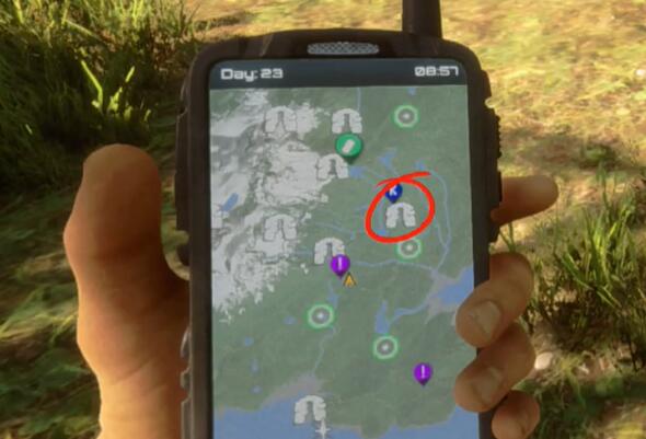 1、打开地图,前往图中画圈的洞穴拿到潜水器。