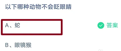 这是一个以下哪种动物不会眨眼睛?支付宝蚂蚁庄园最新今日答案2023.3.25,给玩家分享了今日答题的答案,帮你拿来鸡饲料,喜欢的快来看看吧。