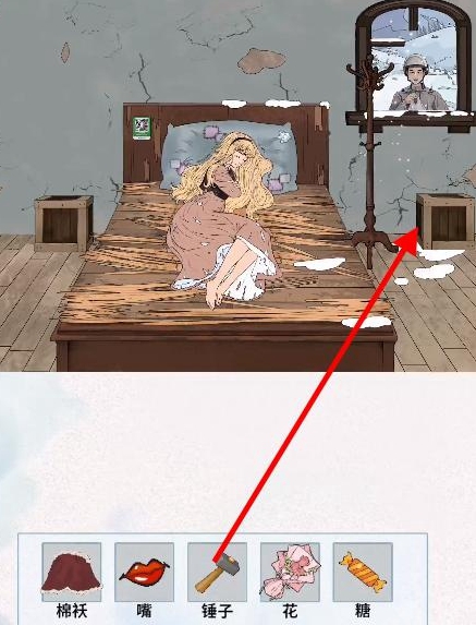 6、再给钱给跑腿小哥可以获得锤子,用锤子砸床边的箱子。