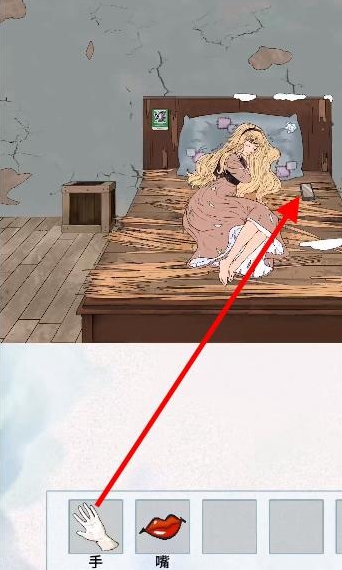 1、先用手拿起床边的手机,然后将把手机给睡美人。
