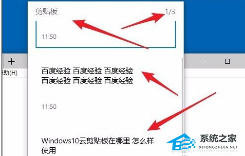 5. 接下来按下键盘上的Windows+V组合键,就可以看到剪贴板中的内容了,可以看到一共多少条复制信息,其中每条信息的内容都可以在该窗口中显示出了,如果需要粘贴某条信息,只需要点击该信息就可以了。